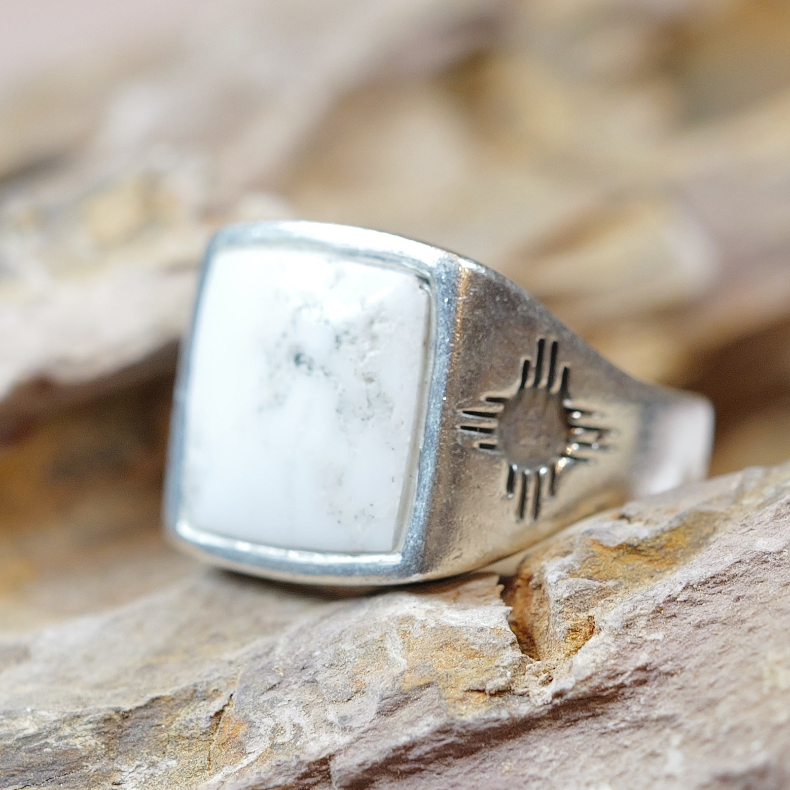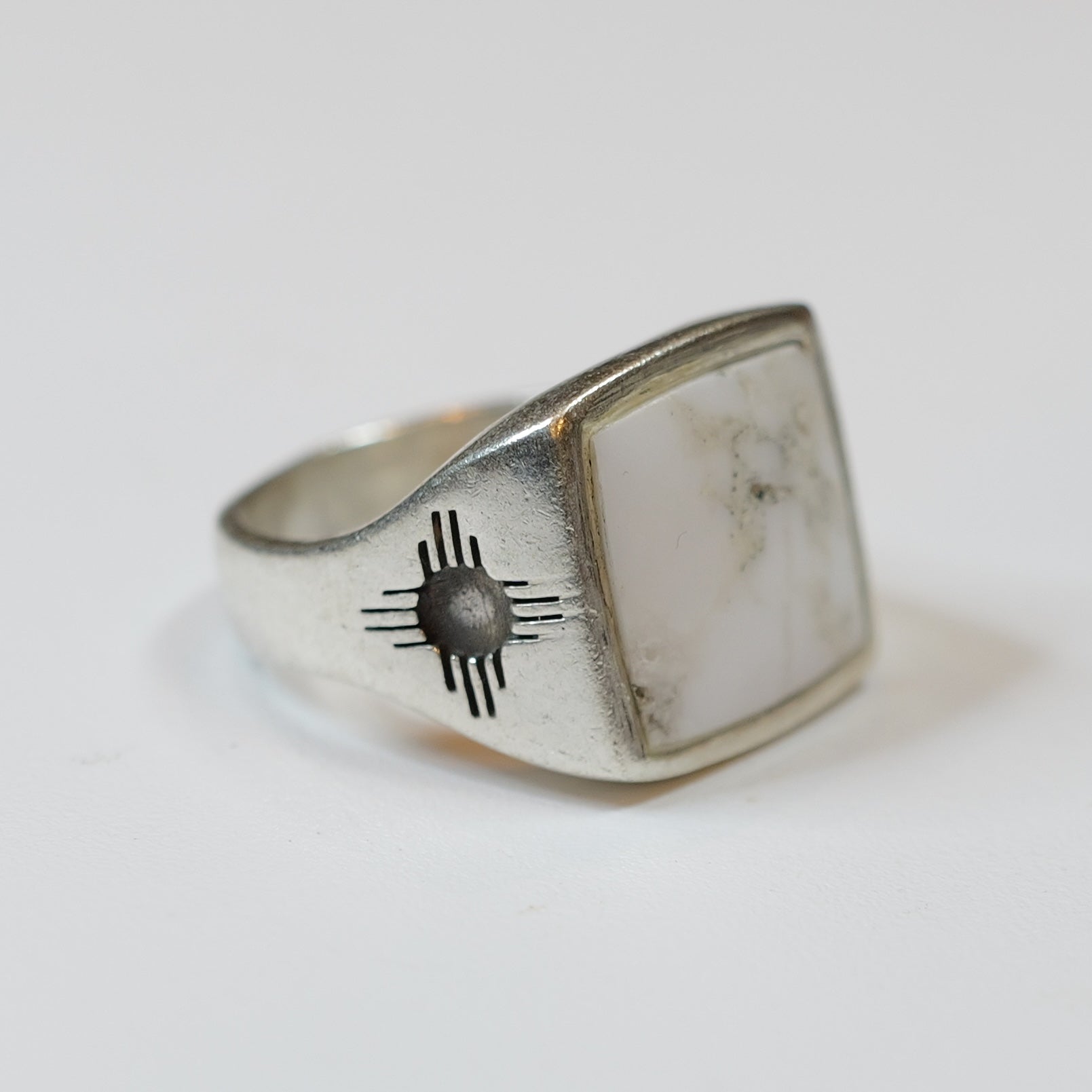 Zuni White Stone Square Ring ズニ族 ホワイトストーン リング 21号